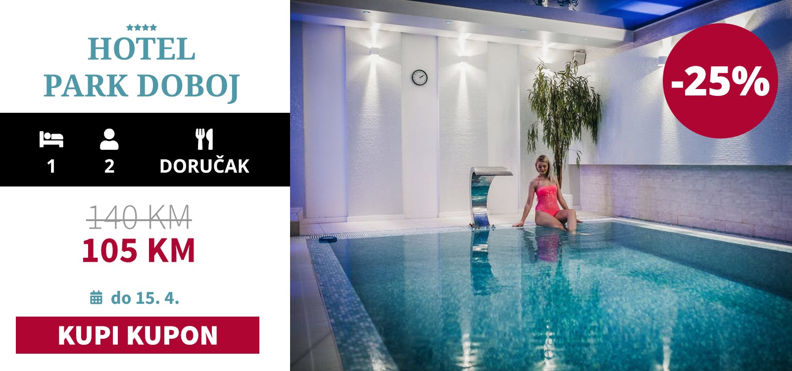 NOVO: Korištenje SPA centra (bazen, jacuzzi, finska i parna sauna, tople klupe, slana soba, hladna soba, bar sa pogledom na bogato prirodno okruženje i životinje)