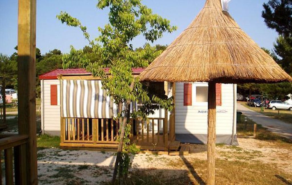 Dobrodošli u prekrasne mobilne kućice površine 24 m2 za 4 odrasle osobe i 2 djece. Kućice su klimatizovane i sastoje se od spavaće sobe s bračnim krevetom, dječje sobe s 2 kreveta, kupatila, kuhinje sa šporetom, frižiderom, loncima, tanjirima, priborom za jelo i sjedećom garniturom, koja se može pretvoriti u dodatni ležaj za dvoje djece, te drvene natkrivene terase s vrtnom garniturom. Jedino što gosti moraju ponijeti sa sobom su peškiri i kuhinjske krpe. Gosti u kućicu ulaze poslije 16 h, a istu napuštaju do 10 h.