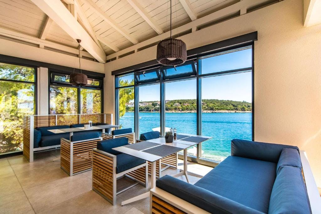 Restoran i barovi: Hotel nudi nekoliko gastronomskih opcija: Glavni bufet restoran – u kojem se poslužuju doručak, ručak i večera (raznovrstan izbor jela, međunarodna i mediteranska kuhinja). A la carte restoran “Lungomare” – sa pogledom na Medulinski zaliv, idealan za romantične večere i uživanje u lokalnim specijalitetima. Pool bar – za osvježenje uz bazene. Barovi na plaži (beach barovi) – dva bara na plaži omogućuju koktele i osvježenja uz more. Aperitiv bar, snack bar i slično takođe su dostupni u sklopu objekta. U restoranima se može uživati u raznolikim jelima – svježa riba, mediteranska jela, lokalni specijaliteti – uz poglede i ambijent mora i zaliva.