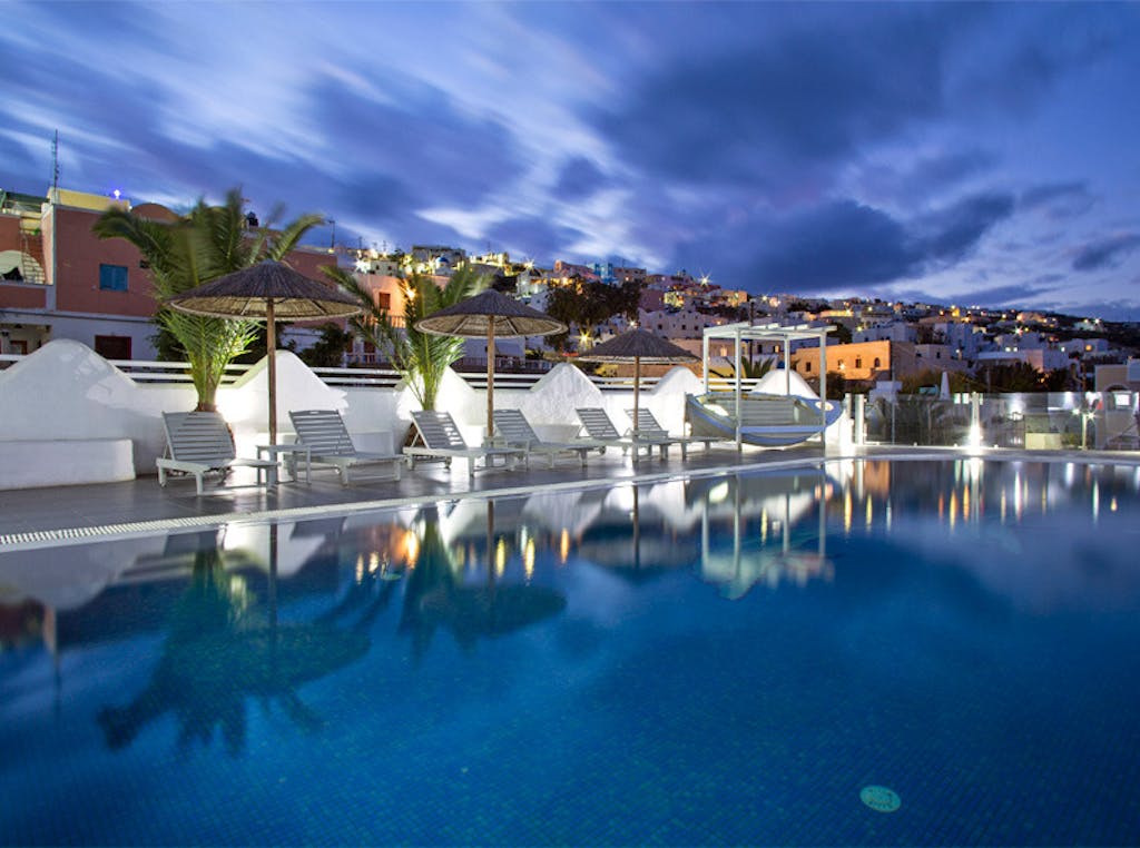 The hotel’s central location is ideal for couples, seeking romantic walks through the cobblestoned streets, for families needing to be near restaurants and transportation services as well as groups of friends looking for adventure in Fira’s infamous nightlife.