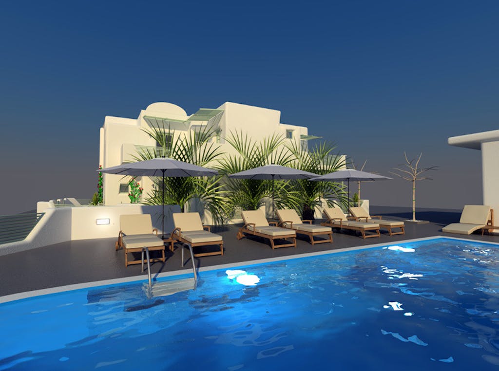 All rooms have been completely redone in Minimalist Cycladic island style, indulge in the comfort of these fully renovated rooms and suites in Fira. We welcome you to come and enjoy the tranquility and serenity by our sea view pool, graced with swaying palm trees and light sea breezes, making your journey to Greece a magical one.