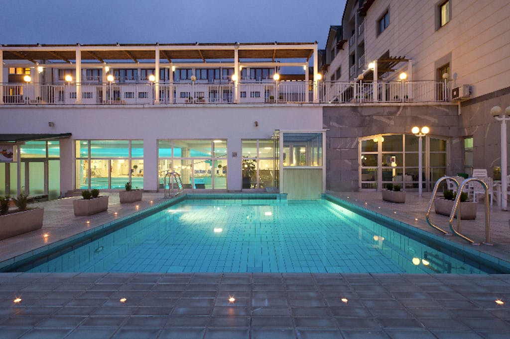 You can also relax in the swimming pool. There are indoor and outdoor pools and whirlpools with thermal water. There is also a classic Finnish sauna, infrared sauna and Turkish bath. For a relaxing day, you can also go to a hotel fitness or squash court. After all-day fun activities you will surely enjoy a delicious dinner at the top Mezzanine hotel restaurant with a varied range of homemade cuisine.