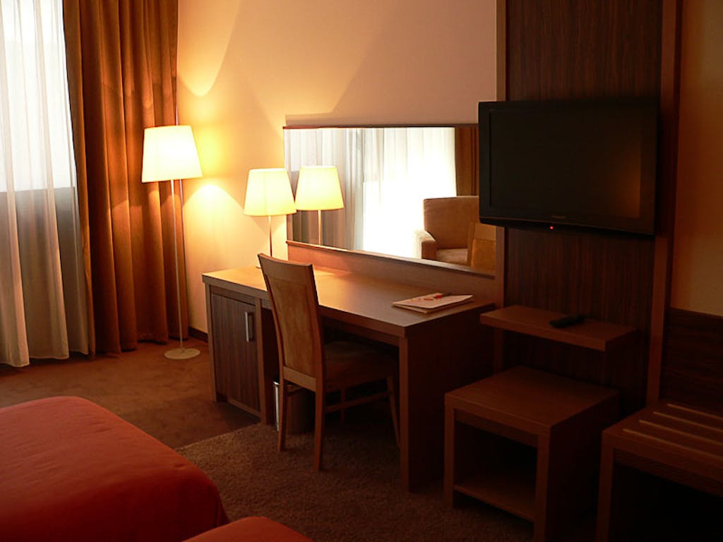 The hotel also offers its guests a convention hall, video-monitored parking garage, a coffee shop, pastry shop and Sport Bar. A generous self-service breakfast with delicious home-made delicacies and a wide selection of drinks will satisfy even the most demanding guests.