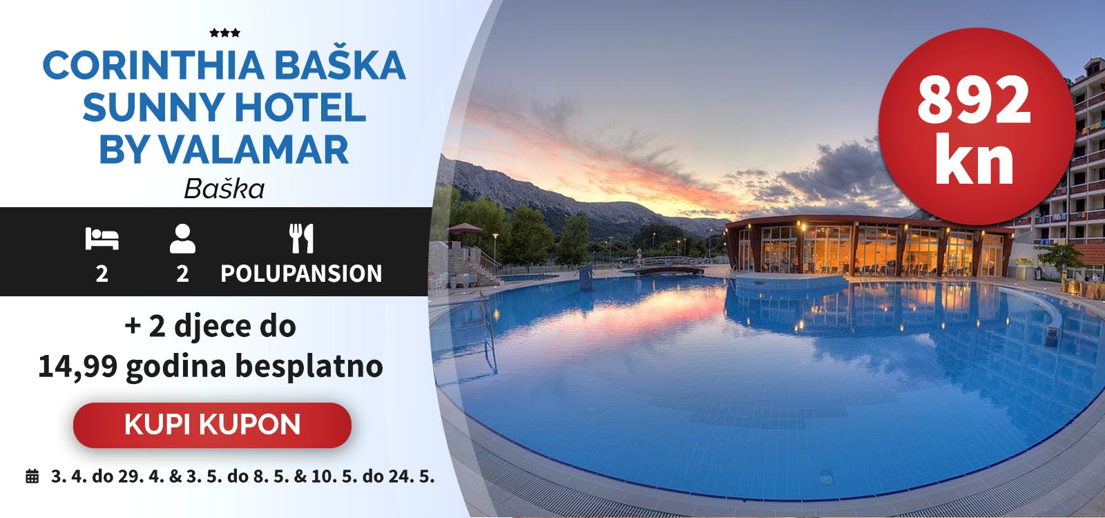 - 2x noćenje s polupansionom za 2 osobe (2 djece do 11,99 godina besplatno)