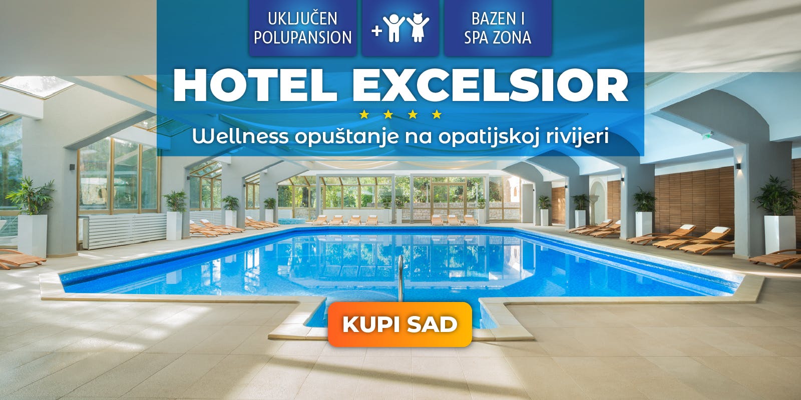 - Neograničeno korištenje unutarnjih bazena s hidromasažom te dječjeg bazena i fitnessa