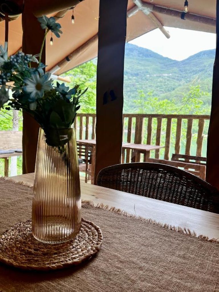 Gurmani će uživati u našem raznovrsnom jelovniku. Možete kušati meso sa ražnja, svježe ulovljenu ribu iz jezera ili jelo od janjetine pripremljeno na tradicionalan način. Ako želite osvježiti sebe u najtoplijem dijelu dana, imamo širok izbor osvježavajućih pića koja možete naručiti ili zatražiti dostavu u vaš glamping šator.