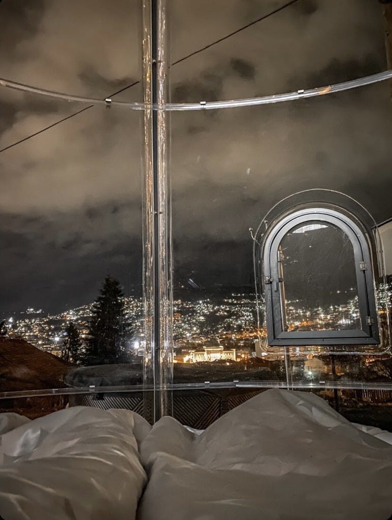 Novo na Megabonu! Glamping kupola s očaravajućim pogledom na grad Sarajevo i jacuzzijem! Samo 600 m od Latinskog mosta i 700 metara od fontane Sebilj.