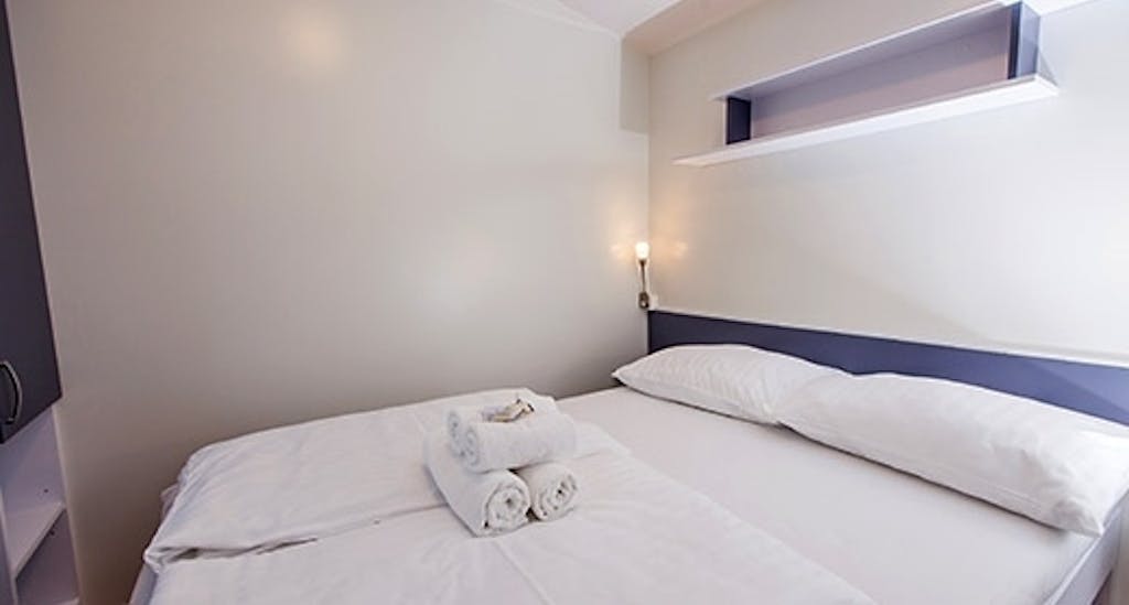 Klimatizirane mobilne kućice na površini 24 m2 nude 2 spavaće sobe (s bračnim i odvojenim krevetima), kupaonicu (umivaonik, tuš kabina), odvojeni WC, kuhinju i salon sa sjedećom garniturom. Kuhinja je potpuno opremljena posuđem, velikim hladnjakom i mikrovalnom pećnicom. Posteljina i ručnici su uključeni u cijenu. Satelitska TV i besplatan WiFi dostupni su u svim jedinicama. Na velikoj uređenoj terasi s vrtnom garniturom i ležaljkom možete uživati u nezaboravnom pogledu na pučinu.