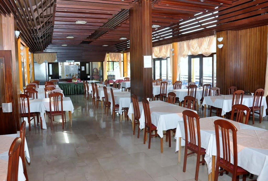 Objekt se sastoji od 3 paviljona. Centralni paviljon ima 9/2 i 4/3 sobe (tuš kabina/WC, TV), bez balkona. Niski paviljon ima 5/2 i 3/3 soba, tuš/WC, TV. Svaka soba ima malu terasu. Katni paviljon ima u prizemlju i na katu po 10 soba i po 1 apartman s 2/2 sobe, kuhinja, tuš/WC. Raspored: 14/3, 6/2 soba, svaka soba ima tuš/WC. Sobe u prizemlju imaju malu terasu, a na katu balkon. Sve kupaonice su obnovljene prije sezone 2014 Ispred katnog paviljona se nalazi igralište koje se može koristiti u večernjim satima – ili prema dogovoru. Hotel ima veliki restoran. Nakon večere grupe mogu koristiti ovaj restoran (ili prostoriju koja se nalazi u prizemlju centralnog paviljona) za zabavu u svom aranžmanu do 24,00 sata. Svi paviljoni imaju centralno grijanje.