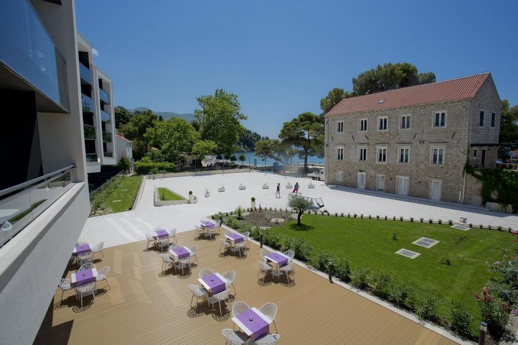 Ronilački centar udaljen je 100 metara.Hotel je smješten u neposrednoj blizini malog i slikovitog trga do kojeg se stiže mostom preko potoka. U blizini gosti mogu razgledati stogodišnja stabla platana i oleandara.Do UNESCO-m zaštićene povijesne jezgre Dubrovnika ima 8,5 km. Moguće je organizirati obilaske grada i Mlina te druge izlete. Zračna luka Dubrovnik udaljena je 10 km.