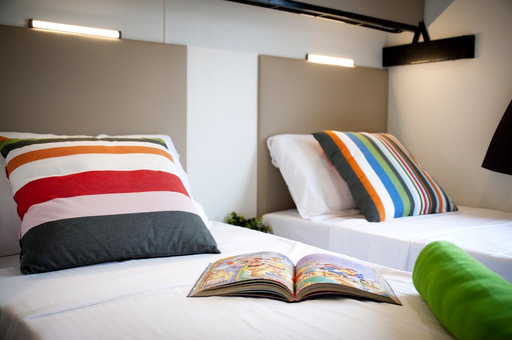 Šatori se nalaze u sjenovitoj borovoj šumi Bi-Villagea, samo nekoliko koraka od mora i imaju sve pogodnosti kampa (bazeni, restorani, trgovine, liječnička ordinacija, frizerski salon, bankomat, Wi-Fi).