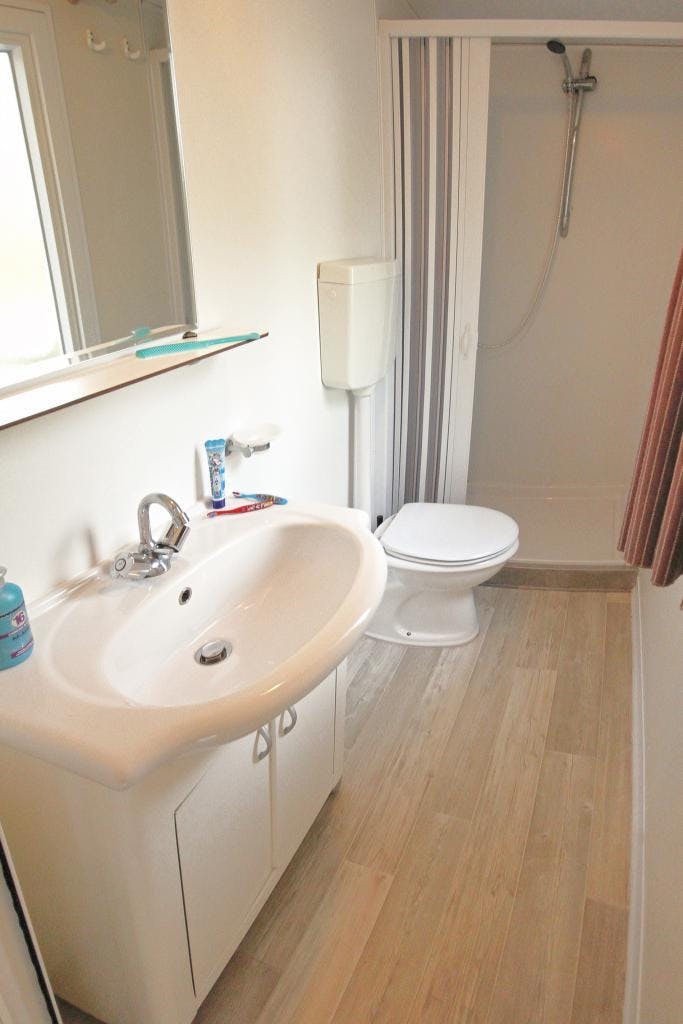 Mobilna kućica Standard (24 m2) pogodna je za 4 odrasle osobe i dvoje djece do 12 godina. U svijetloj i prostranoj mobilnoj kućici nalazi se 1 spavaća soba s bračnim krevetom, druga spavaća soba s tri kreveta. Dodatna osoba spava u središnjem prostoru / potpuno opremljenoj kuhinji. Treći krevet u drugoj spavaćoj sobi pogodan je za osobe do 150 cm. Kupaonica je opremljena tušem i WC-om. Kuća nema TV. Ima terasu s plastičnim vrtnim namještajem.