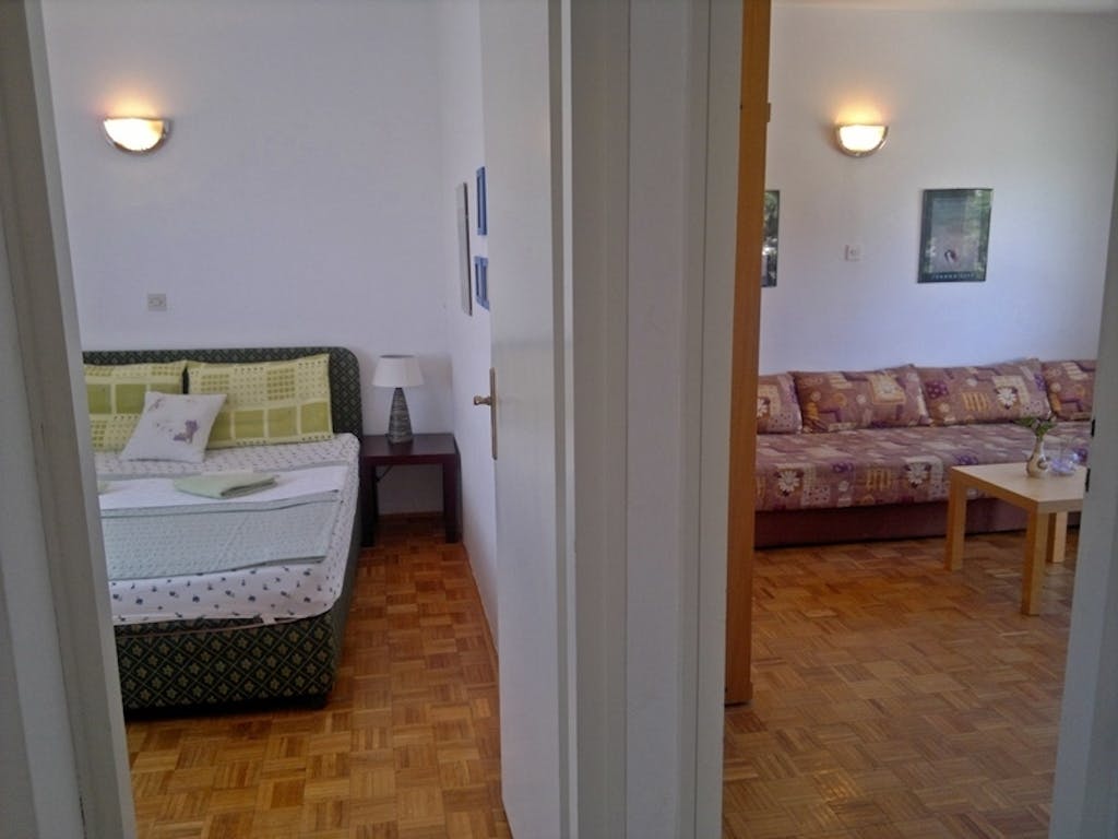 Apartman „Palma“ se nalazi u prizemlju, veličine je 50 m2 i sastoji se od sljedećih soba: dnevni boravak sa  TV-om ,2 kreveta i trosjedom na razvlačenje za spavanje,spavaća soba sa bračnim krevetom,kupaonica sa tuš-kabinom i potpuno opremljena kuhinja. Iza apartmana vezana za dnevni boravak  nalazi se velika terasa opremljena  vrtnim namještajem i pogledom na vrt. U našem vrtu možete uživati igrajući se svojom djecom i/ili kućnim ljubimcima,možete roštiljati ili se jednostavno odmoriti uz dobru knjigu. Ispred kuće i unutar dvorišta kuće postoji mogućnost parkiranja.