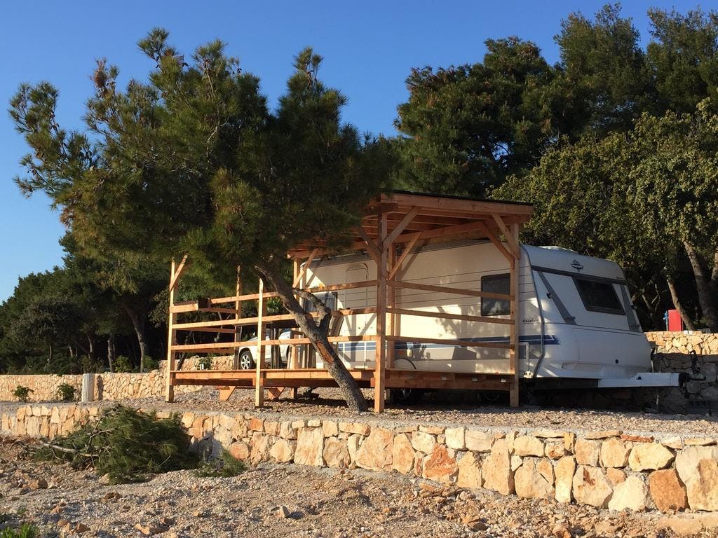 Gostima je na raspolaganju boravak u prikolicama za 4 osobe. U njima je klima uređaj, potpuno namještena kuhinja i natkrivena terasa s vrtnom garniturom. Od sanitarija i plaže prikolice su udaljene cca 80 metara.