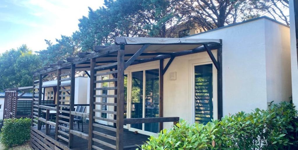 Odsjednite u jednoj od udobnih i prostranih mobilnih kućica smještenih na svega par koraka od mora. Okružen bogatim zelenilom i predivnim pogledom na otok Krk, kamp je idealan odabir za parove, obitelji i sve koji vole uživati. Smješten u hladu mediteranskog drveća na površini od 8 hektara.