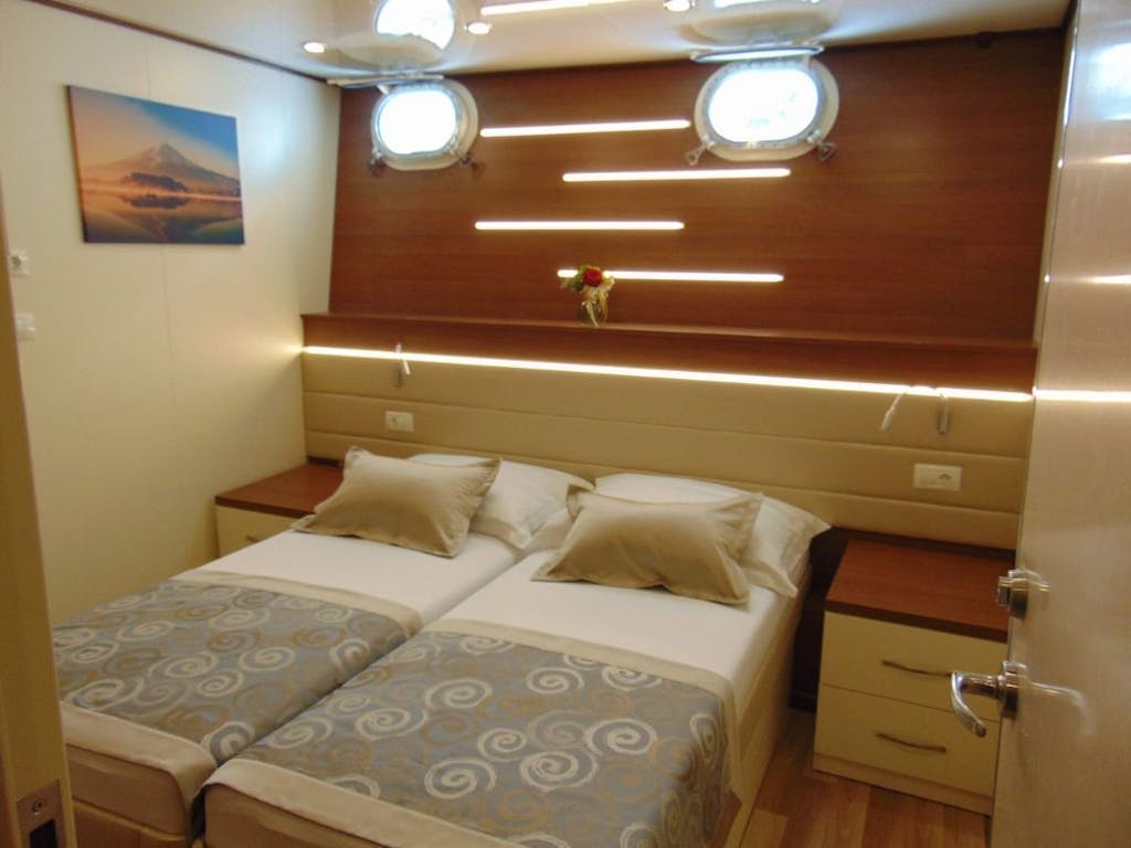 • 3x noćenje u dvokrevetnoj kabini donja paluba (klima i privatna kupaonica) na brodu M/S San Spirito deluxe kategorije (dužina 41 m) za 1 osobu