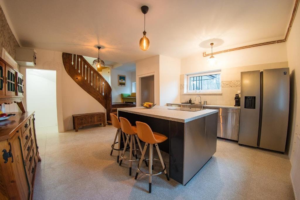 Prostor je obnovljen i ima tri etaže s ukupno 5 soba (4 imaju vlastitu kupaonicu), središnji dio je kuhinja s blagovaonom i dnevni boravak za druženje. Besplatan Wi-Fi dostupan je u vili. Uz terasu, vanjski prostor uključuje i natkrivenu ljetnu kuhinju te kamin.