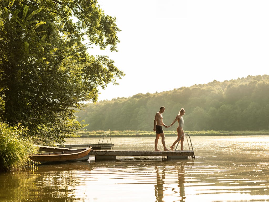 LAKEVIEW CABIN (18 m²) pogodna je za 2 odrasle osobe i 1 dijete (do 17,99 godina). Nalazi se direktno na vodi (rivi) i ima terasu.. Tuš kabine, umivaonice i udobni prostori za sjedenje nalaze se u sanitarnoj zgradi nekaj metra od kućice.