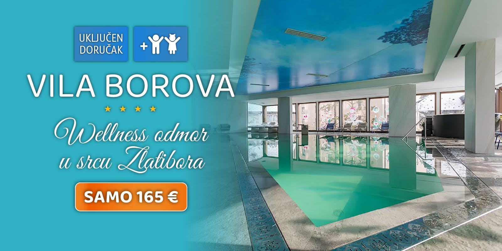 - Korištenje Wellness & Spa centra tokom sedmice (unutrašnji bazen, vanjski bazen, jacuzzi, finska, ruska, bio i infracrvena sauna, tursko kupatilo, tople klupe/tepidarijum)