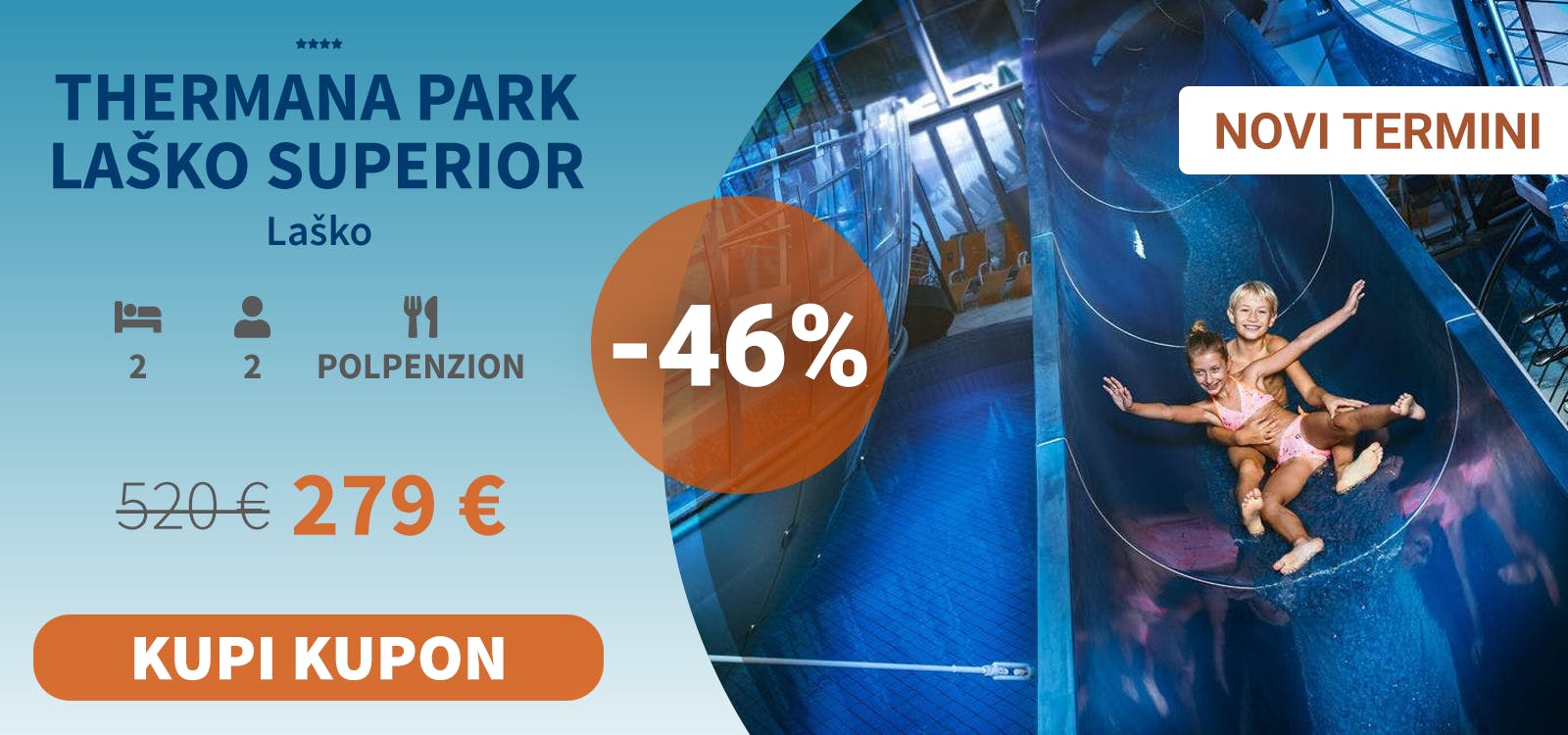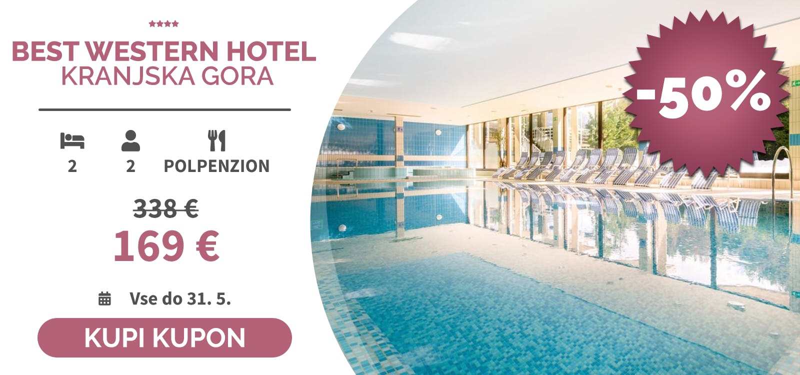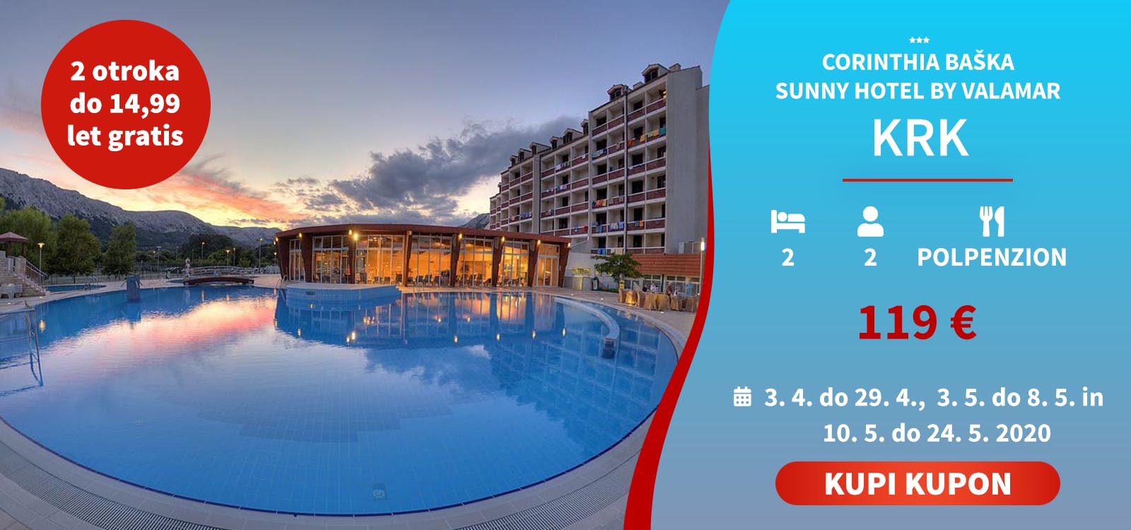 - 2x nočitev s polpenzionom za 2 osebi (2 otroka do 11,99 let brezplačno)