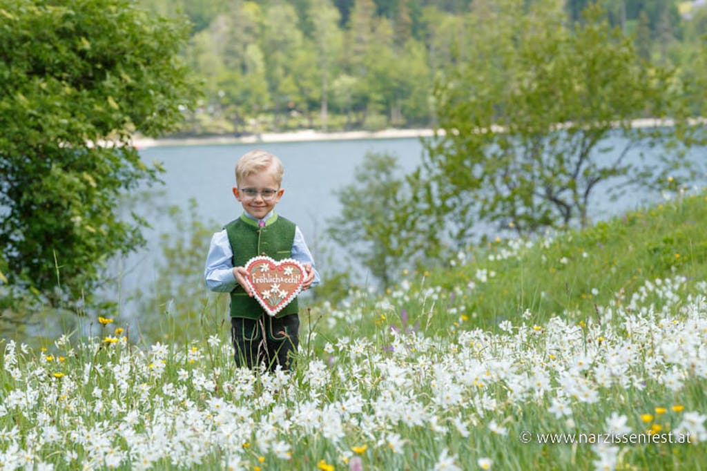 Salzkammergut je slikovito območje alpskih jezer, globoko vrezanih dolin, gričev in razgibanih gorovij, ki se dvigajo visoko na skoraj 3000 metrov. Čeprav je pokrajina zelo obiskano turistično območje, tukaj še vedno lahko najdemo odmaknjeno divjino, in osamele kotičke, kjer se vode kristalno bleščijo in vabijo k čolnarjenju, plavanju, ribolovu ali pa samo k posedanju ob jezerski gladini. V Ausseerlandu bele zvezdaste narcise cvetijo od sredine maja do sredine junija; v svojih rumenih, belih in zelenih odtenkih pomladno podeželje barvajo v dišeče morje cvetja!