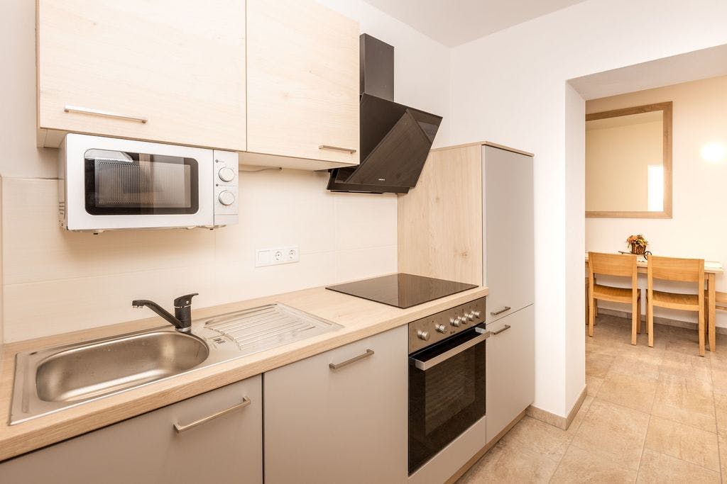Apartma Sarah (velikosti 58 m²) ponuja dovolj prostora za do šest oseb. Apartma ima popolnoma opremljeno kuhinjo in prostorni dnevni prostor ter 2 spalnici.