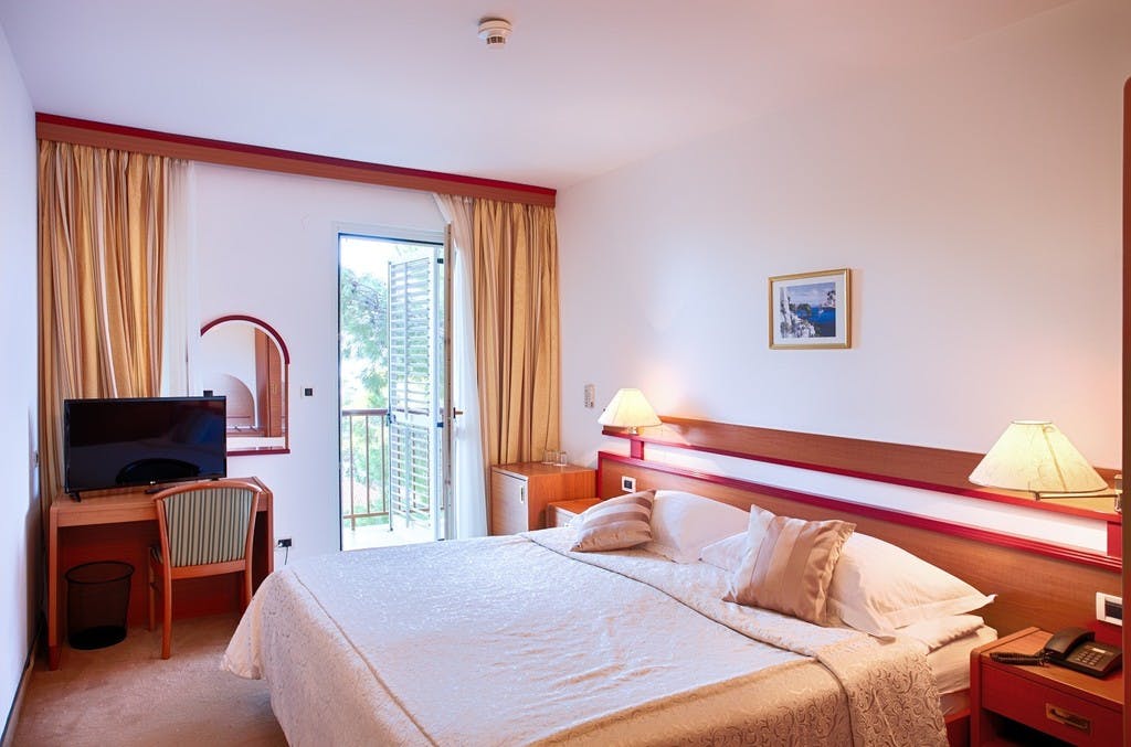 Standard dvoposteljna soba (velikosti 20 m2) z balkonom ima tudi klimo, mini bar, sef, satelitsko TV, parkirišče, privatno kopalnico, fen, kopalni plašč in copate.