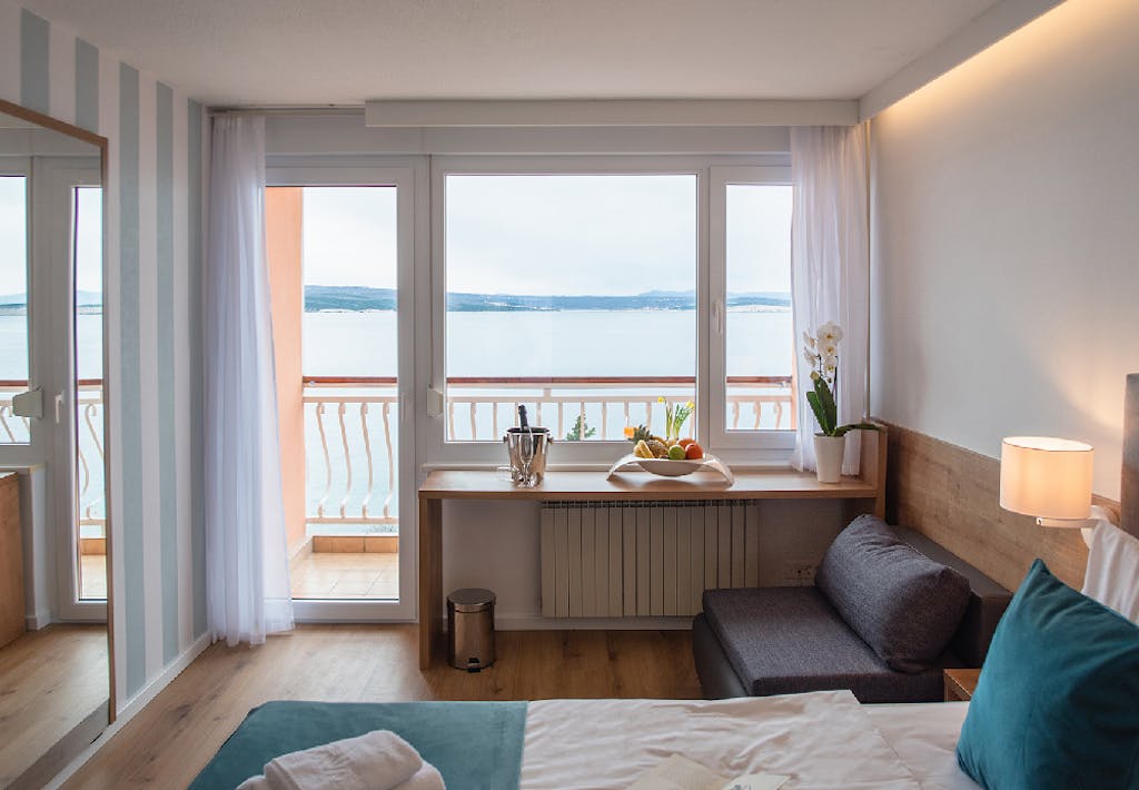 Sobe so opremljene: klima, gretje, kopalnica (WC/tuš), satelitska TV, vse sobe s pogledom na morsko stran imajo balkon, medtem ko sobe na strani park deloma imajo balkon. Idealni vremenski pogoji, ki so prisotni skozi celotno leto, gostom omogočajo uživanje v številnih aktivnostih, kot so izleti z ladjo s pikniki in degustacijami vina na otoku Krk in Vrbniku. Čas lahko preživite v kopanju v kristalno čistem morju, sončenju, za vse aktivne pa so tu sprehodi, tek in kolesarjenje v okolici Crikvenice.