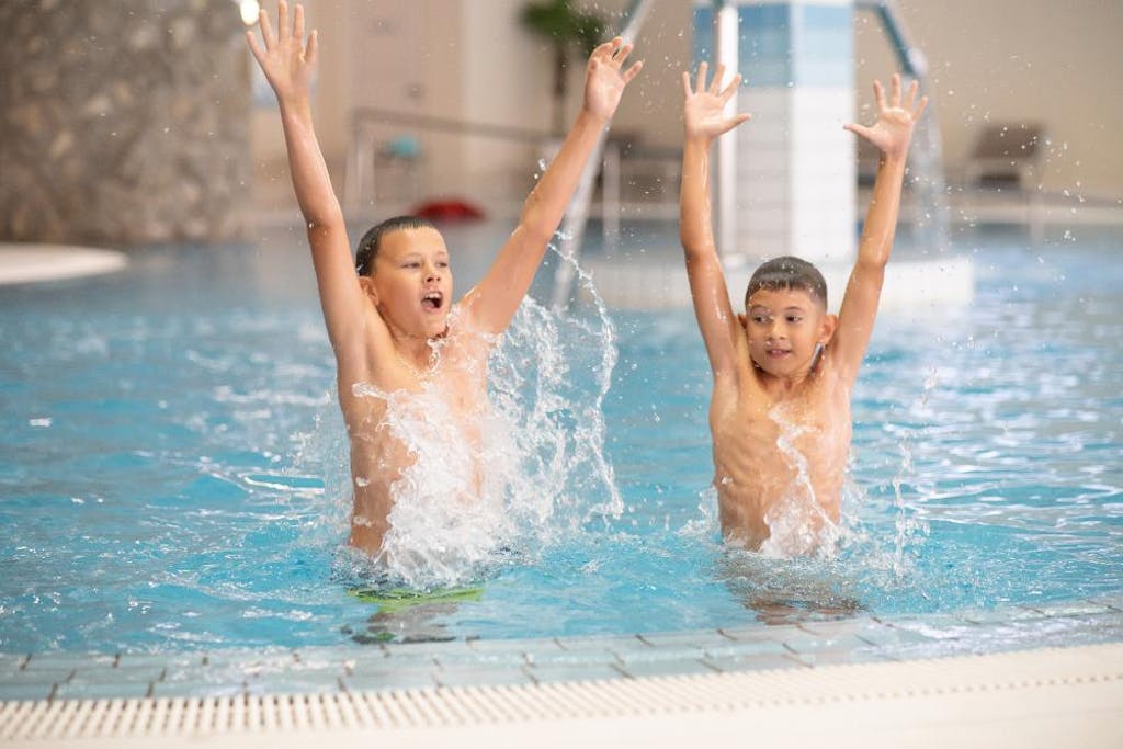 • Neomejeno uporabo prenovljenega notranjega bazena s hidromasažo in otroškega bazena z družinsko savno (za odrasle in otroke)