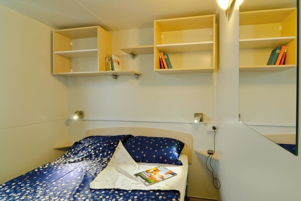 Mobilna hiška 4+1 je popolnoma opremljena hiška (24 m²) ima lahko pokrito leseno teraso ali pokrito teraso iz kamnitih plošč. V dnevni sobi se nahaja kotna sedežna garnitura, ki jo lahko spremenite v ležišče za dve osebi. Kuhinja je opremljena s plinskim štedilnikom, hladilnikom, mikrovalovno pečico in kavnim aparatom za kuhanje filter kave. V kuhinji je tudi kompleten kuhinjski in jedilni pribor za 5 oseb. V spalnici se nahaja zakonska postelja in omara, medtem ko se v drugi sobi nahajata 2 postelji za eno osebo,1 nadstropno ležišče za manjšega otroka in omara. Hiška je opremljena s klimatsko napravo.