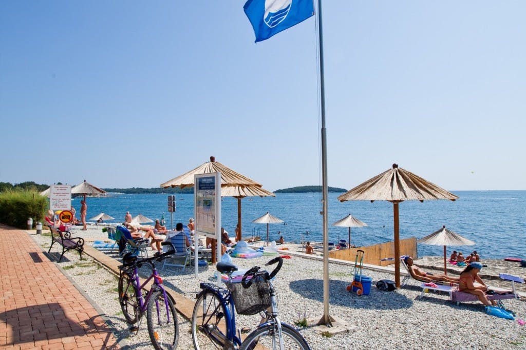 Plaže v kampu so urejene in odlične za otroke. Sončite se in se kopajte v morju ali bazenu. Plaže so večinoma skalnate ali prodnate in imajo Modro zastavo – mednarodno oznako, ki pomeni čisto okolje in visoko kakovostne storitve. Okolica: Navdušeni boste tudi nad okolico, ki ponuja številne možnosti preživljanja prostega časa, prekrasne poglede, možnosti za rekreacijo in druge vsebine. Letovišče Zelena laguna je čudovit, z borovim gozdom poraščen polotok. Nudi tudi številne dejavnosti, ki vas bodo razveseljevale, takrat ko se ne boste prepuščali sončnim žarkom na plaži. Na voljo je tudi turistični vlakec, ki vas bo popeljal do Poreča v samo 15 minutah, tako si lahko ogledate mesto, se sprehodite in uživate dan v Poreču.