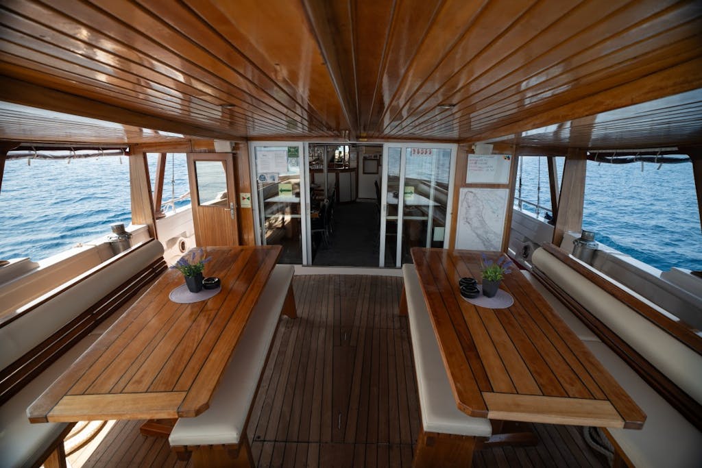 • Ladja ima kabine v spodnji, glavni in zgornji palubi. Postelje v kabinah so francoske postelje ali pogradi.
