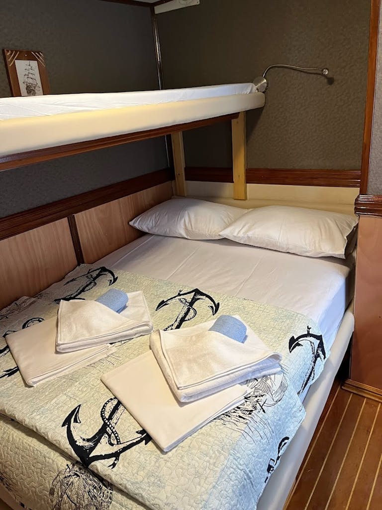 • Ladja ima kabine v spodnjem delu palube in na glavni palubi. V kabinah so samo zakonske postelje.