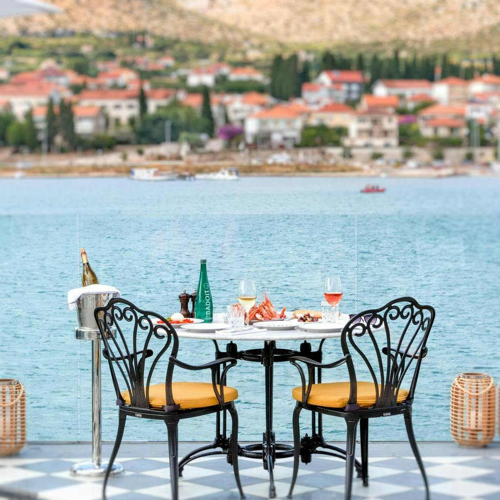 ✔ le nekaj korakov od plaže ✔ neposredno ob Jadranskem morju z razgledom na Trogir ✔ bazen s teraso in ležalniki ✔ spa in wellness ✔ restavracija in bar ✔ idealno za romantične, sproščujoče in luksuzne počitnice