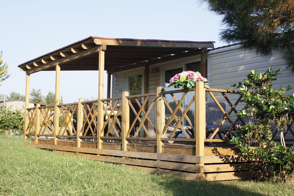 Uživate lahko na terasi, ki je velika 24 m2 in ima mizo in stole. Posteljnino je mogoče dobiti v kampu, prav tako pa so dobrodošli tudi vaši hišni ljubljenčki (z doplačilom).