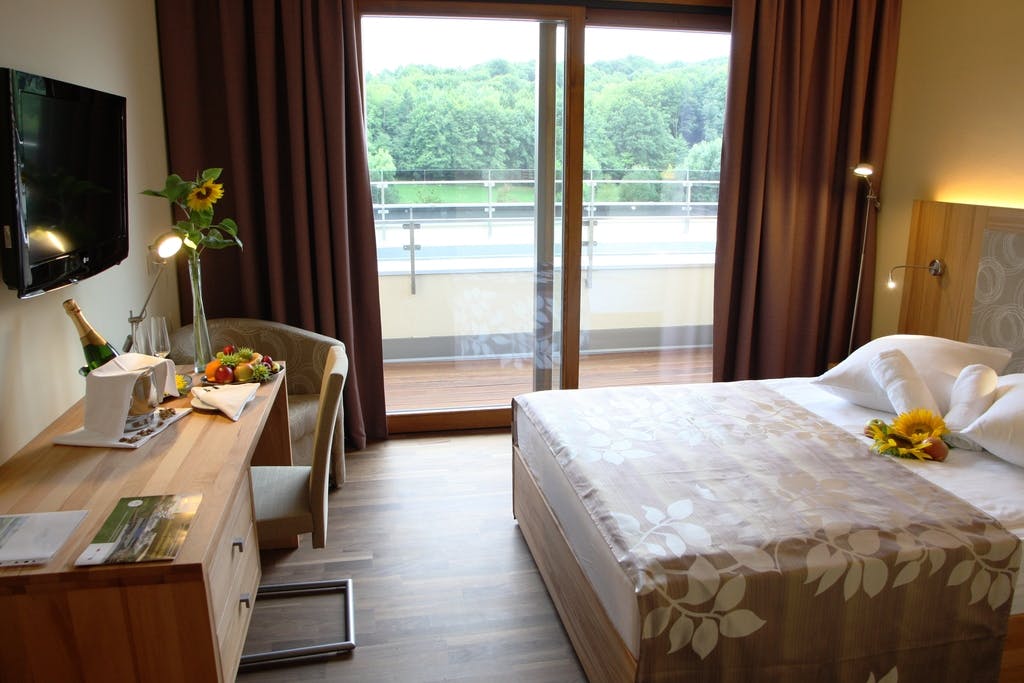 Pobegnite iz betonske džungle v topel objem hotela Bioterme, prežetega z elementi narave in brezkompromisnega udobja – na vsakem koraku kraljuje pohištvo iz masivnega lesa, tla obložena z voskanim lesenim podom in stene barvane z naravnimi barvami v odtenkih vseh letnih časov. Tako imenovane »zdrave sobe« s svojimi naravnimi materiali ionizirajo zrak in preprečujejo elektrosmog, kar poskrbi za odličen spanec, ki vas bo okrepil in pripravil na nove dogodivščine naslednjega dne.