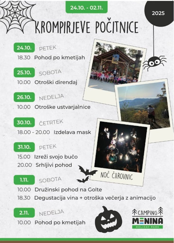 • Rezervacija termina neposredno s ponudnikom po telefonu: +386 51 219 393 ali na e-mail: info@campingmenina.com