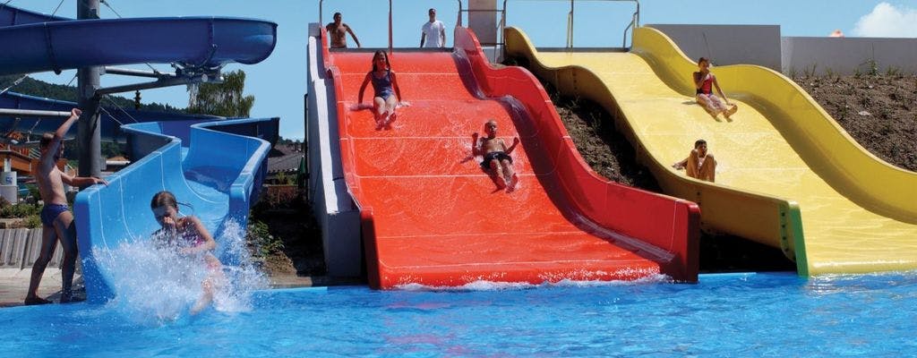 Termalni bazeni: Razprostirajo se na 1600 m², polni pa jih zdravilna akratotermalna voda s kalcijem, magnezijem in hidrogenkarbonatom, kar blagodejno vpliva na telo. V bazenih lahko uživate v vseh letnih časih. Pozimi se potopite v masažne bazene ali zaplavajte v prostornem notranjem bazenu, najmlajši pa se lahko navdušujejo v otroškem bazenu. V toplejših mesecih se prepustite soncu na prostorni in moderni terasi, ohladite se v zunanjih bazenih ali pa se odpravite na andrenalinski spust po toboganih in hitrih drčah.