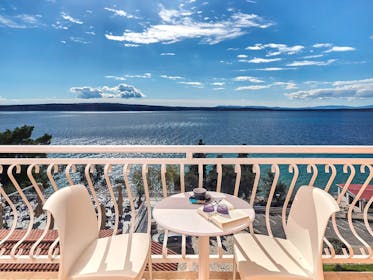 Superior dvokrevetna soba sa balkonom, pogled na more: renovirana soba, balkon, pogled na more, dva odvojena kreveta/bračni krevet, 1 dodatni krevet (80x190 cm), maks. 3 osobe, kupatilo sa tušem, hlađenje/grejanje.