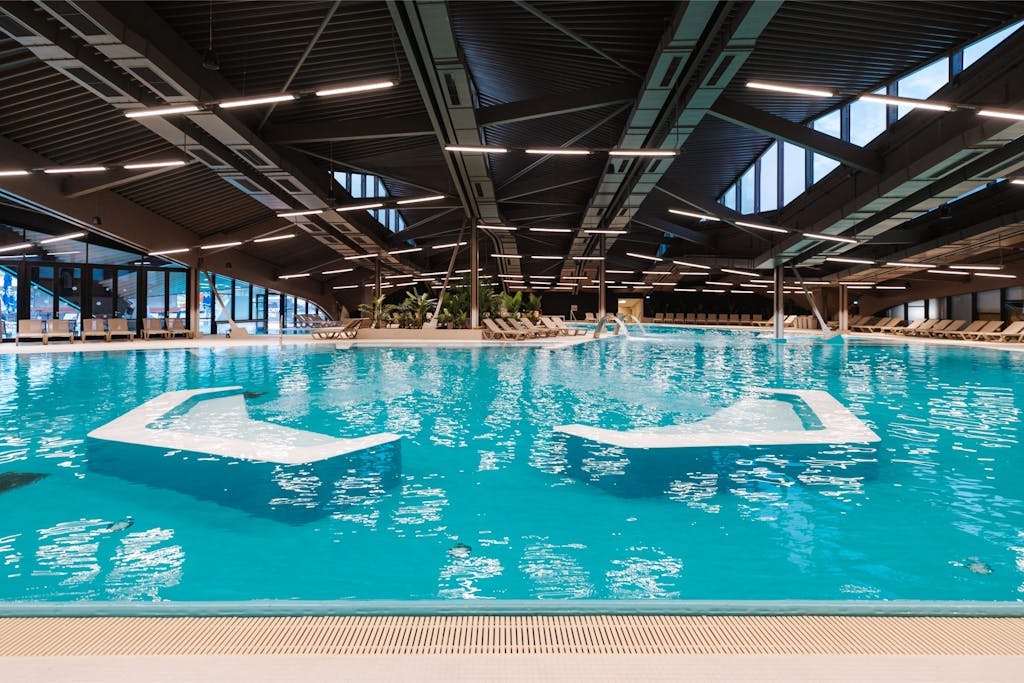 Unutrašnji bazeni: Novi wellness bazen sa atraktivnim vodenim efektima (2 jacuzzija, slapovi, podvodne masaže, vodene i zračne masaže, gejziri). Vodena oaza, povezana sa unutrašnjim i spoljašnjim bazenom, posebno je mesto gde su smeh i zabava ključne reči. Slikovita priroda koja ga okružuje, brojne atrakcije i mesta za odmor probudiće emocije koje se mogu doživeti samo na ovom planetu. Unutrašnji bazen Vodenog planeta sadrži sve što je potrebno za uživanje u vodenim atrakcijama tokom cele godine.