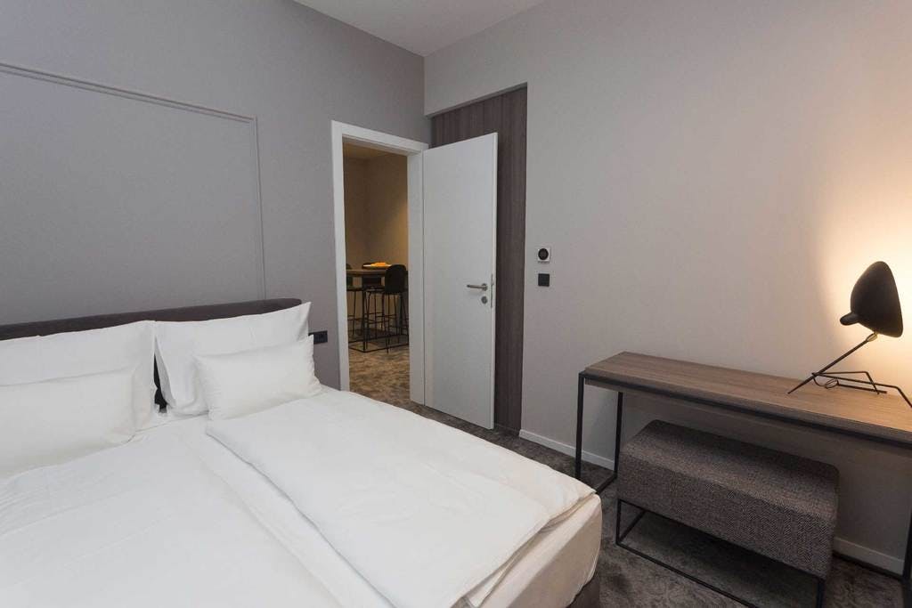 Dvokrevetna Comfort soba nudi sve što očekujete od smeštaja u centru grada. Veliki kreveti i zvučna izolacija savršena su kombinacija da se svako jutro probudite odmorni i spremni za ponovno istraživanje grada. Privatno kupatilo uključuje walk-in tuš, a u samoj sobi čeka vas Nespresso aparat uz koji možete još više uživati ​​u pogledu na grad uz šolju kafe.