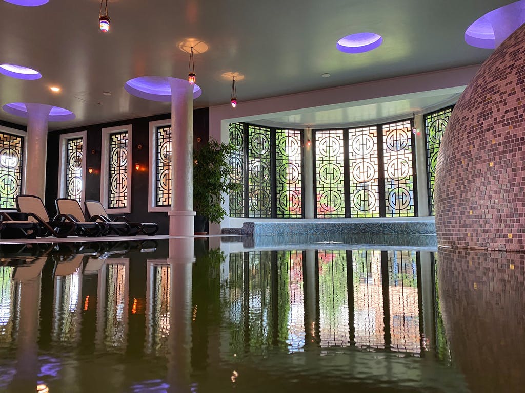 Wellness područje hotela veliko je i raznoliko: uključuje unutrašnje termalne bazene, različite saune (infracrvena, parna, finska sauna), tepidarij, slanu sobu i mirnu „Silent Zone“ zonu. Poseban naglasak stavljen je na holističke i ayurvedske tretmane, masaže, kozmetičke i medicinske programe – dostupno je više od 60 različitih wellness, lečilišnih i holističkih usluga. Prostori su osmišljeni za potpunu relaksaciju: „japanski vrt“, meditativni kutci i spokojan ambijent nadopunjuju doživljaj. Hotel takođe ima unutrašnji bazen, a u sklopu bazenskog i spa područja nalaze se i rekreacijski sadržaji – bazeni sa vodenim efektima i doživljajima.