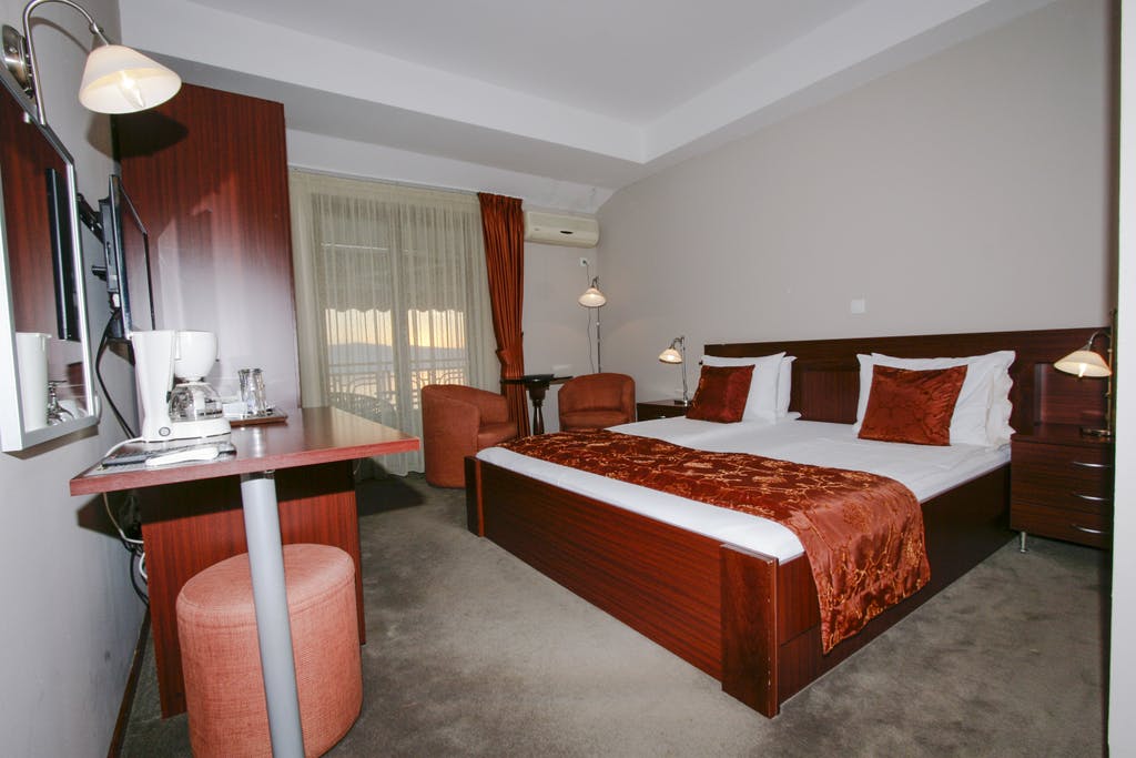 Sadržaji sobe: sef, klima-uređaj, radni sto, deo za sedenje, grejanje, orman, tuš, fen za kosu, toaletni pribor, toalet, kupatilo, kablovski kanali, aparat za kafu/čaj, mini-bar, frižider, peškiri, posteljina. Gornji spratovi dostupni su liftom. Besplatan WiFi je dostupan u svim sobama.