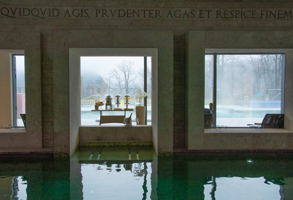 Bazeni: Osetite se kao Rimljani i opustite se u bazenima sa termalnom vodom koja blagotvorno deluje na telo. Impresivan izgled originalnih rimskih kupatila ukupne površine 450 m² ostavlja snažan utisak. Na raspolaganju su unutrašnji bazen (32 °C), četiri unutrašnja whirlpoola (35 °C), spoljašnji panoramski bazen povezan sa unutrašnjim, kao i tri spoljašnja masažna bazena (35 °C).