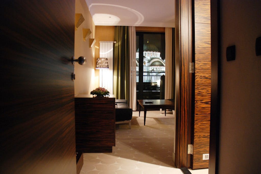 Savršen sklop sofisticiranih boja, ekstavagantnogenterijera, umirujućeg ambijentai komfornim velikim krevetom, oličenje su harmonije i modernog dizajna.Ovaj neobični apartmanupotpunjen je oazom relaksacije, prostrano kupatilo sa masažerom predstavlja pravi ugođaj nakon dugog, napornog dana.